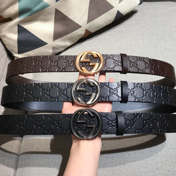 编号: 610DL510150品牌: 古驰 GUCCI尺寸:size:3.8cm新款纯铜扣头层牛皮热压大G纹带身宽配置专柜盒子