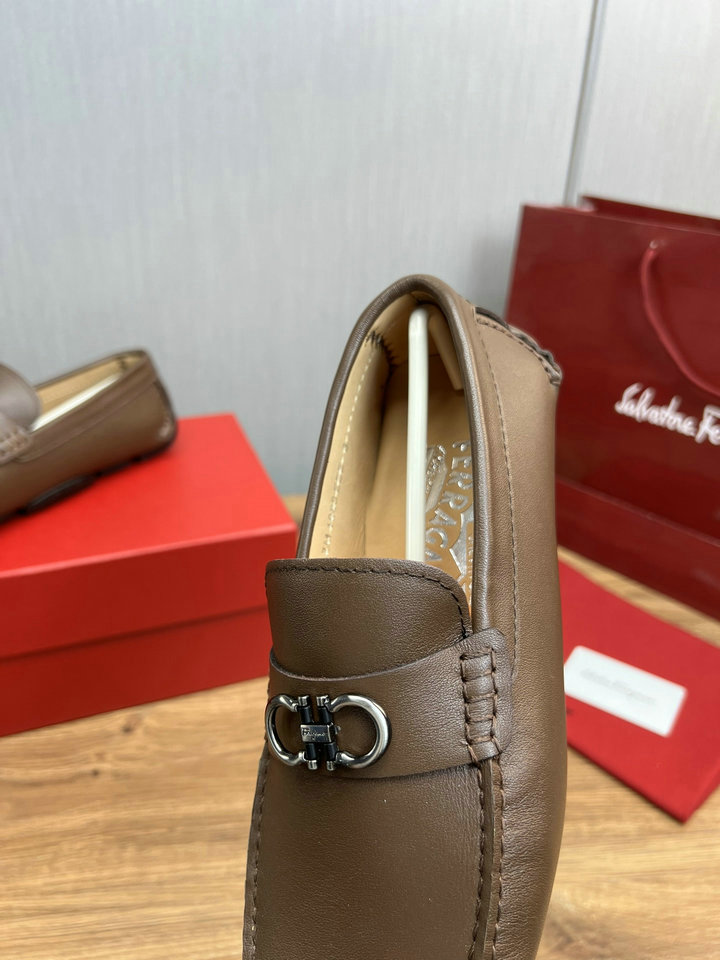 编号: 67A31D3GS350品牌: 菲拉格慕 ( FERRAGAMO )码数:38 39 40 41 42 43 44描述(Describe):经典驾车豆豆鞋,休闲时尚舒适,官网1:1出货,原版牛皮+进口水染牛里,经典五金扣搭配,原版橡胶豆豆大底,常年有货(45订做不退换).