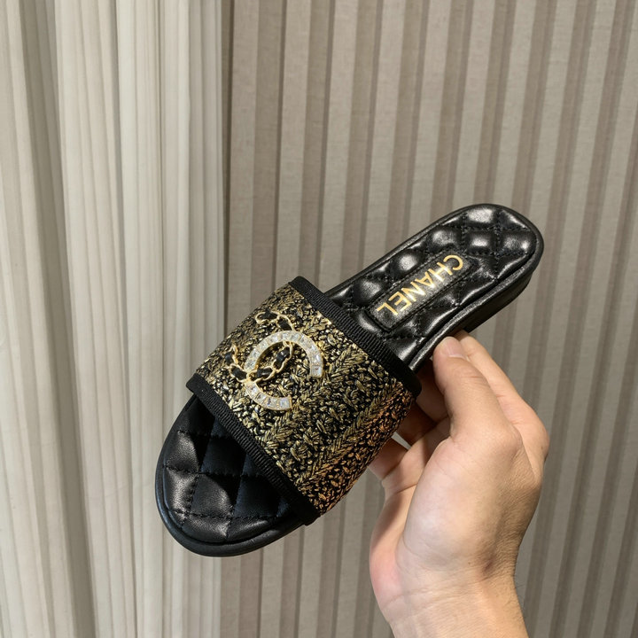 编号: 53A34B2GS280品牌: 香奈儿 ( CHANEL)码数: 35 36 37 38 39 描述(Describe):小香25P春夏新品,双C平底拖鞋,鞋面采用原版定制材质,内里垫脚均为丝绸羊皮,意大利进口牛皮大底,(40/41定制).