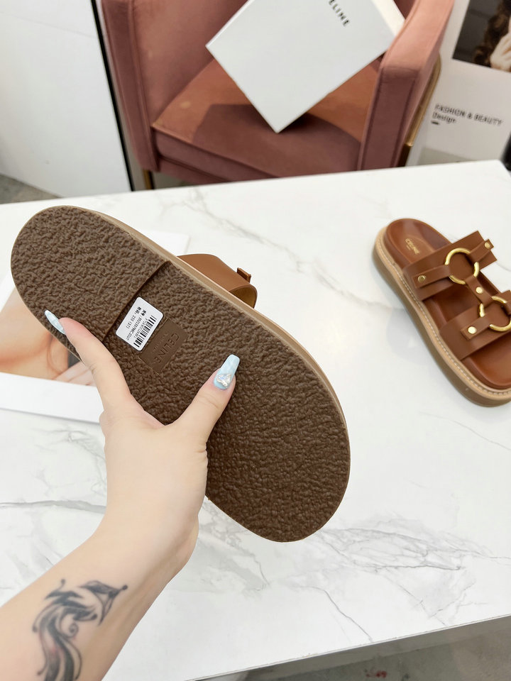 Describe: | 编号: 8A30B2GS240品牌: 赛琳 ( CELINE )码数: 35 36 37 38 39 40 描述(Describe):春夏新品凉鞋五金扣饰原版1:1定制鞋面采用全油边工艺,楦形流畅完美,上脚百搭舒适,颜色:黑色,白色,棕色,内里:羊皮,面料:牛皮,(41定做不退换) |