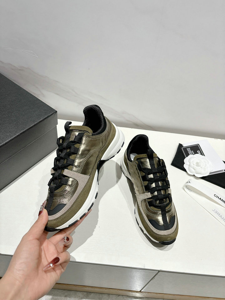 Describe: | 编号: 46A49B2GS330品牌: 香奈儿 ( CHANEL)码数: 35 36 37 38 39 描述(Describe):(顶级版本)小香25A新品运动鞋休闲鞋时尚圈又双叒被香奈儿拿捏住了!就成了各路时髦精的心头好,标志性的双C标志在鞋身低调点缀,金属质感高级,细节满分,不经意间流露出品牌的奢华底蕴,懂的人一眼就get到你的时尚品味。鞋型设计堪称一绝,融合复古与现代美学。厚底老爹鞋款式4 - 5cm的增高效果,瞬间拉长腿部线条 小个子星人秒变大长腿;低帮款露出纤细脚踝 利落又随性 ,圆头设计对宽脚、肉脚超友好,舒适不挤脚 走路都带风。日常出街随性又时髦;配运动套装 去健身房,户外运动 潮流感十足;换上小裙子 又能营造优雅名媛风,参加下午茶、聚会也不掉范儿!面料采用原版定制皮料,内里垫脚均为透气网布,原版开模定制防滑大底,(40定制). |