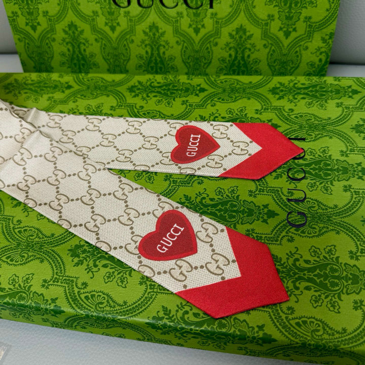 编号: 45A95W5OY100品牌: 古驰 ( GUCCI )描述(Describe):复古经典的双G爱心配色简直了,少女心爆棚!尽显温柔气息~绑手挽、束发、包包装饰或当领结都非常百搭_很帅气的一款 5*86cm 100%斜纹真丝面料.