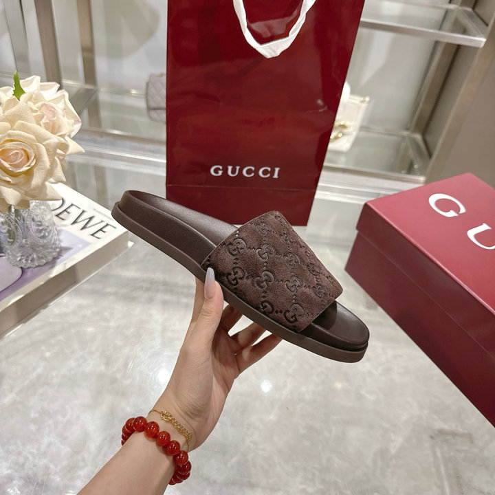 Describe: | 编号: 35A58B1GS220品牌: 古驰 ( GUCCI )码数: 女款:36-42 男款:39=47描述(Describe):新款男女同款防滑沙滩凉鞋拖鞋这款时尚的设计展示了GG图案,将传统优雅与现代精致融为一体。柔软的绒面革鞋面提供精致触感,而内凹的鞋底则确保全天舒适和多功能性。GG牛皮反绒男女同款,皮革衬里,橡胶大底,平底意大利制造, |