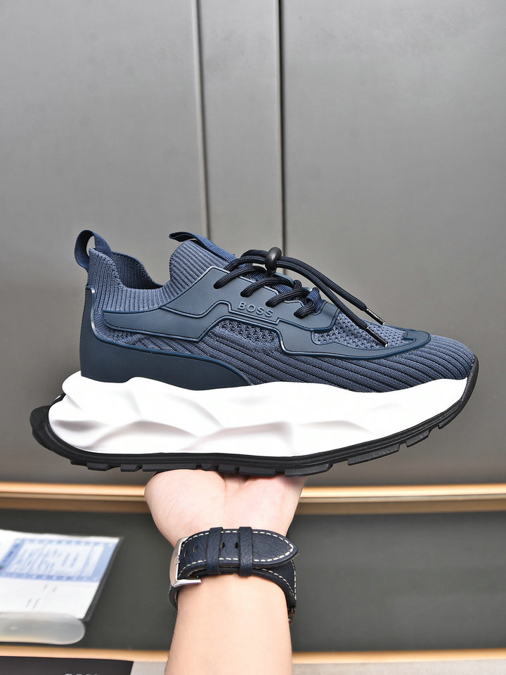 编号: 95A27G2GS320品牌: BOSS码数:38 39 40 41 42 43 44描述(Describe):BOSS 高端劲爆款专柜设计 面部采用高弹力飞织+牛皮+进口滴胶!TPU大底,上脚方便,轻盈舒适有弹力,新潮时尚!多色选!(45 46定做).