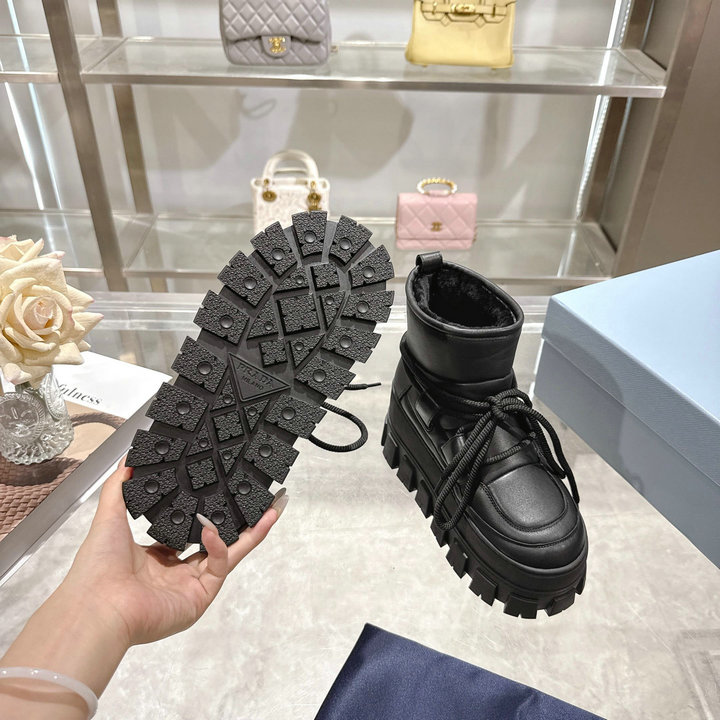 Describe: | 编号: 88A38C3GS440品牌: 普拉达 ( PRADA )码数: 35 36 37 38 39 40 41 42描述(Describe):2025最新PRADA普拉达:新奇别致的柔软牛皮面,纯羊毛里,独特的设计的风格,为此款复古风雪地靴注入心裁别出的设计巧思4.5厘米橡胶鞋底,涂珐琅金属配件,凹凸鞋底花纹,颜色:4个色. |
