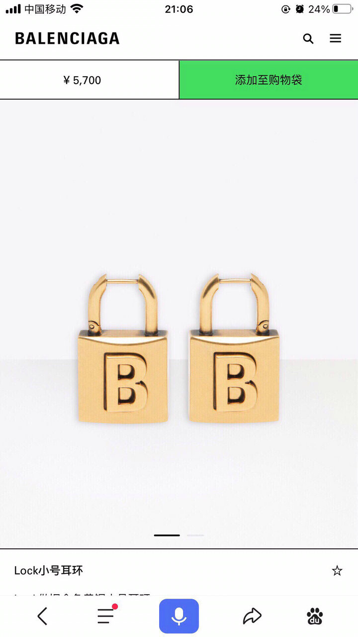 编号: 70ZG45090品牌: 巴黎世家 BALENCIAG吊坠BB耳环 新到耳饰 个性时尚 性感妩媚 有点风格、个性十足、又超级百变搭 大牌又酷的时鬓度满分!实物超有质感哦、复古风十足 古铜色 工艺制作精美 黄铜材质9.25银
