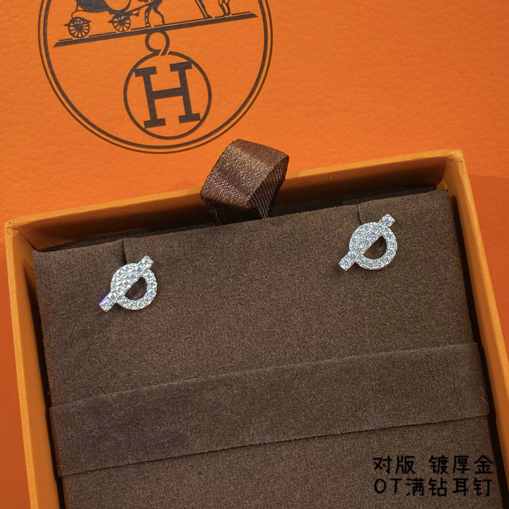 编号: 35ZG270120品牌: 爱马仕 HERMES925耳钉 爱马仕OT满钻耳钉 精工版 众多网红女神爱戴OT扣满钻耳钉 纯银材质 手工铲钉镶嵌 原版字印