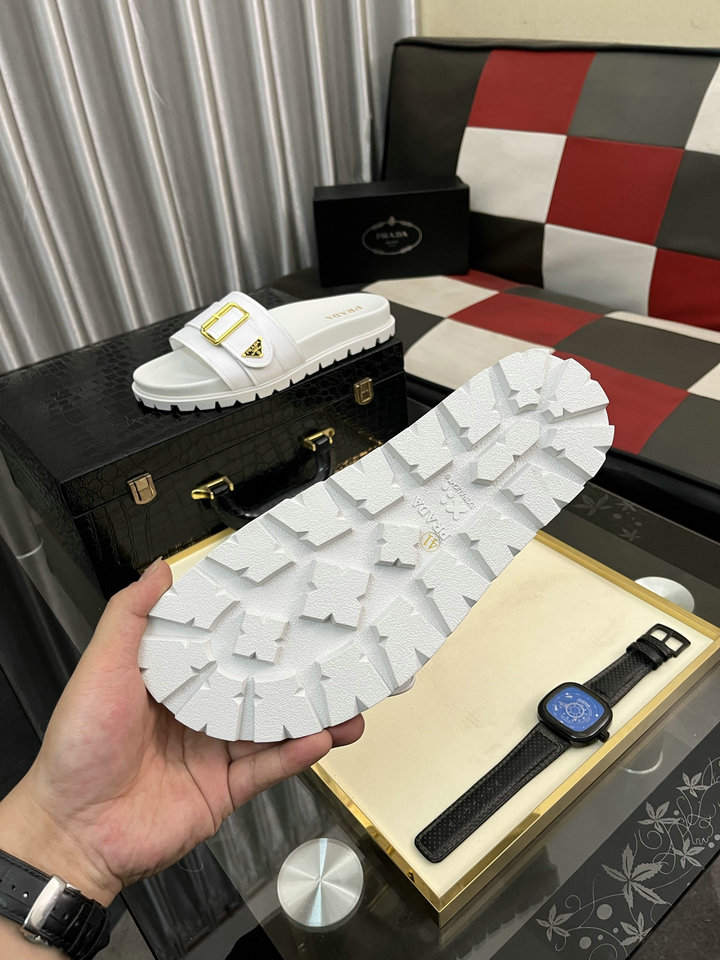 编号: 75A76C1GS200品牌: 普拉达 ( PRADA )码数:38 39 40 41 42 43 44描述(Describe):奢牌休闲拖鞋,进口原版羊皮,羊纹内里 高档舒适,原版大底轻盈耐磨!纯手工制作,细节决定品质! 2色可选.