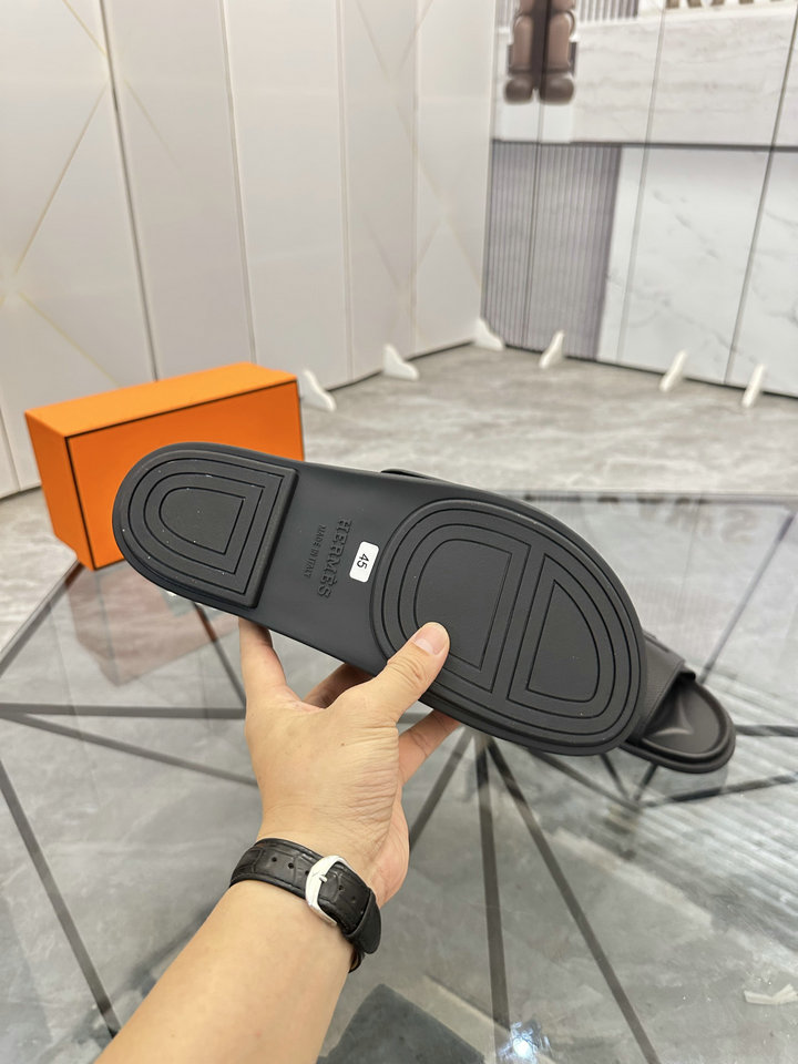 编号: 48A70E2GS240品牌: 爱马仕 ( HERMES )码数:36 3738 39 40 41 42 43 44 45描述(Describe): 拖鞋 凉鞋(可订做46)情侣款商品材料:鞋面进口牛皮,舒适透气内里,原版大底。编号:698.