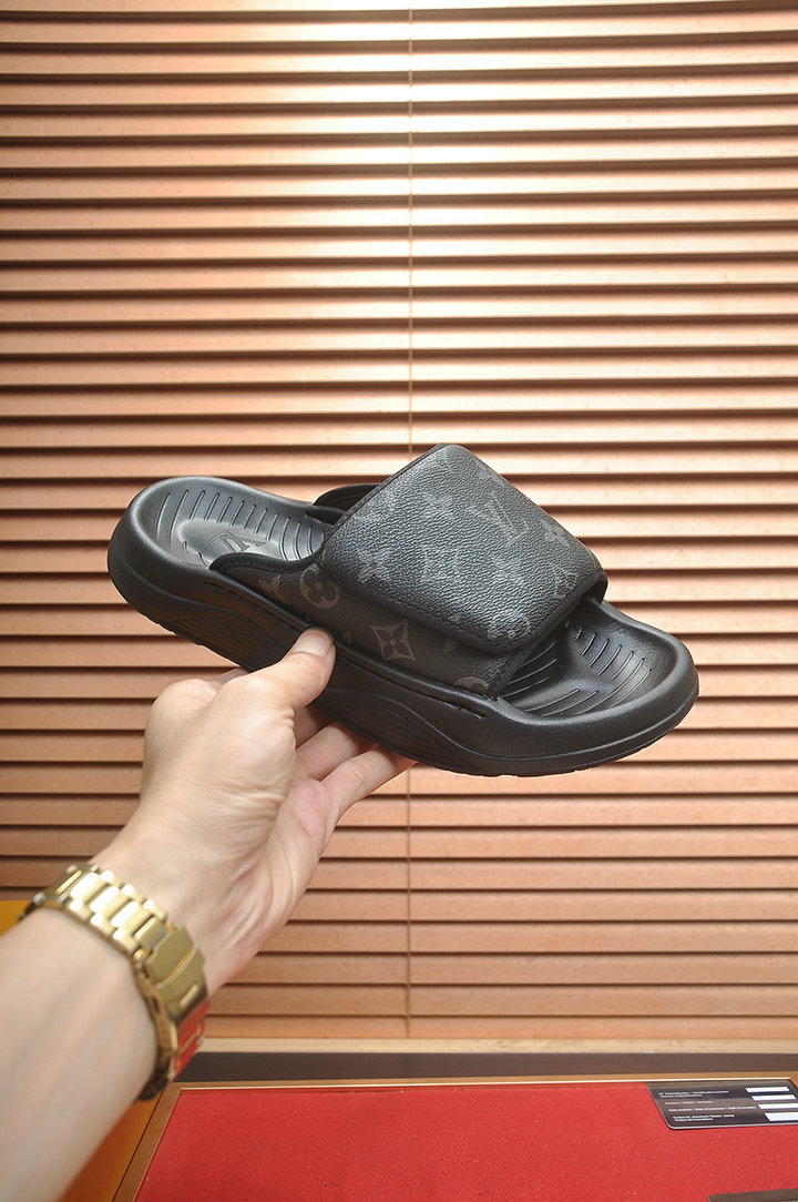 Describe: | 编号: 59A69E1GS230品牌: 路易威登 ( LV )码数:38 39 40 41 42 43 44描述(Describe):【路易威登LV拖鞋】(高端牛皮)专柜1:1时尚风范 夏季必备!设计师运用了LV 标志性的大底。使得原本简单的拖鞋立刻变得潮范十足!鞋面采用柔韧的专用牛皮带相间搭配,做工考究!型男过夏天必备,(45定做). |