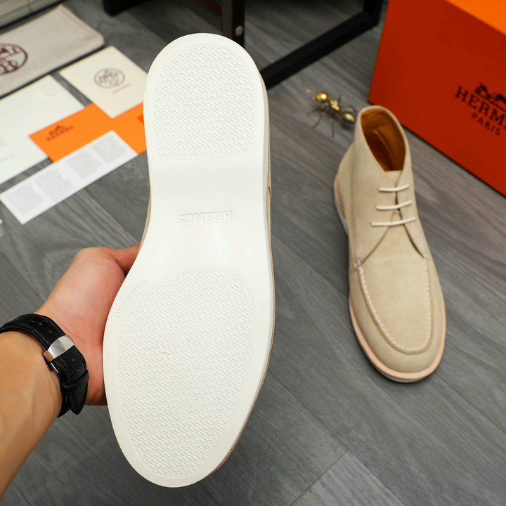 编号: 81A54H3GS390品牌: 爱马仕 ( HERMES )码数:39 40 41 42 43 44描述(Describe):商品商标:HERMES「 爱玛仕」高帮休闲皮鞋(38.45定做不退换)商品材料:精选 磨砂牛皮鞋面 牛皮内里 原版橡胶大底.